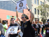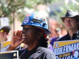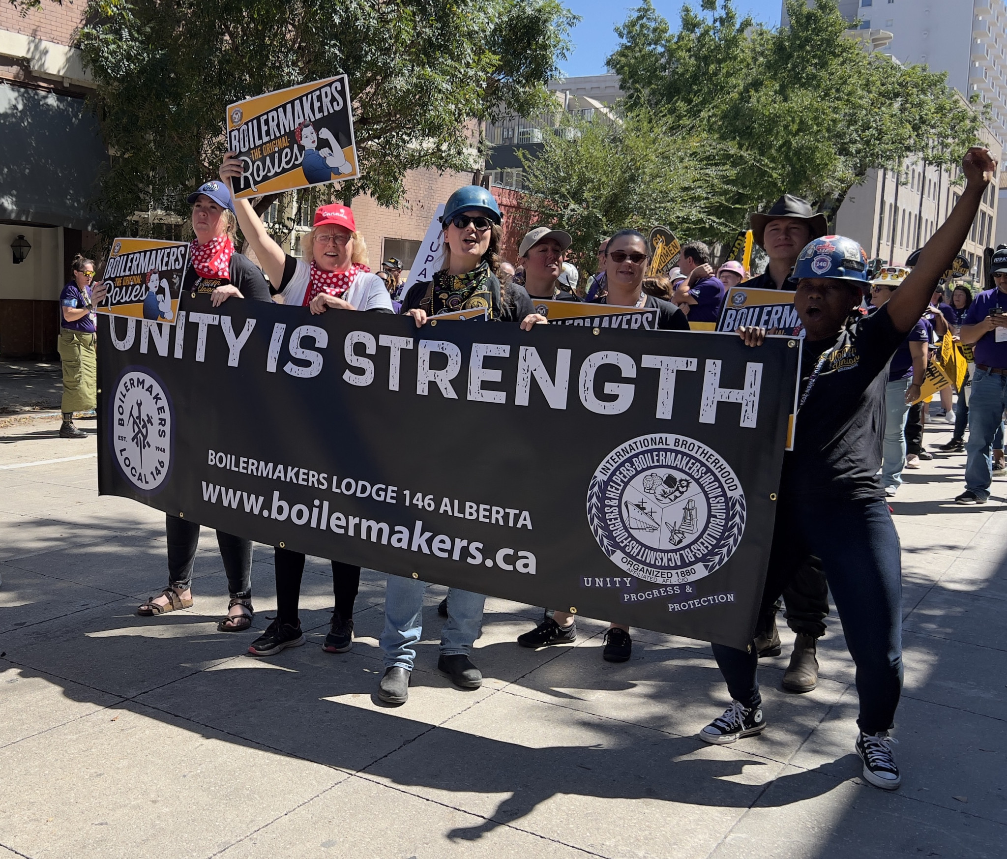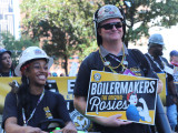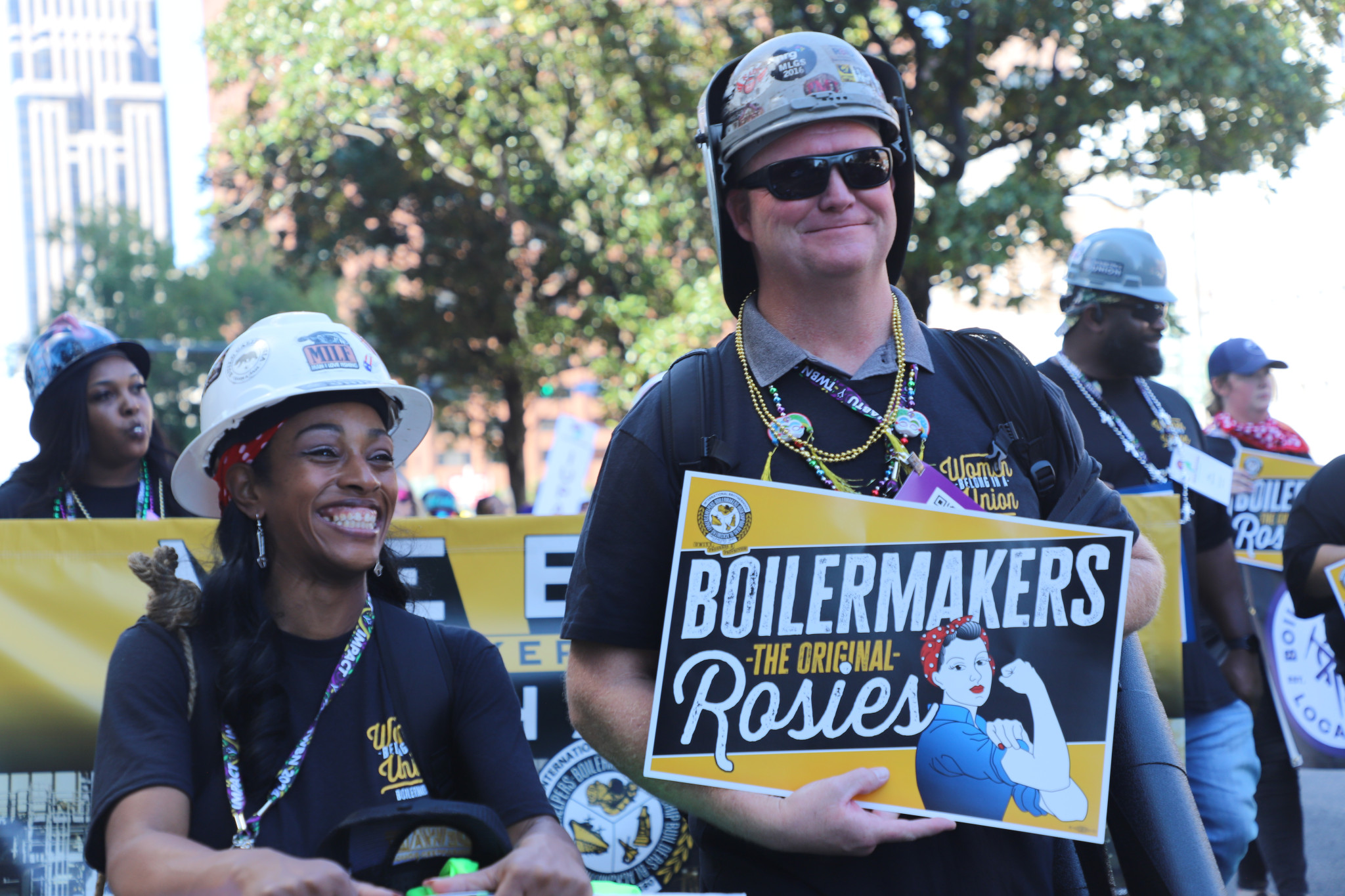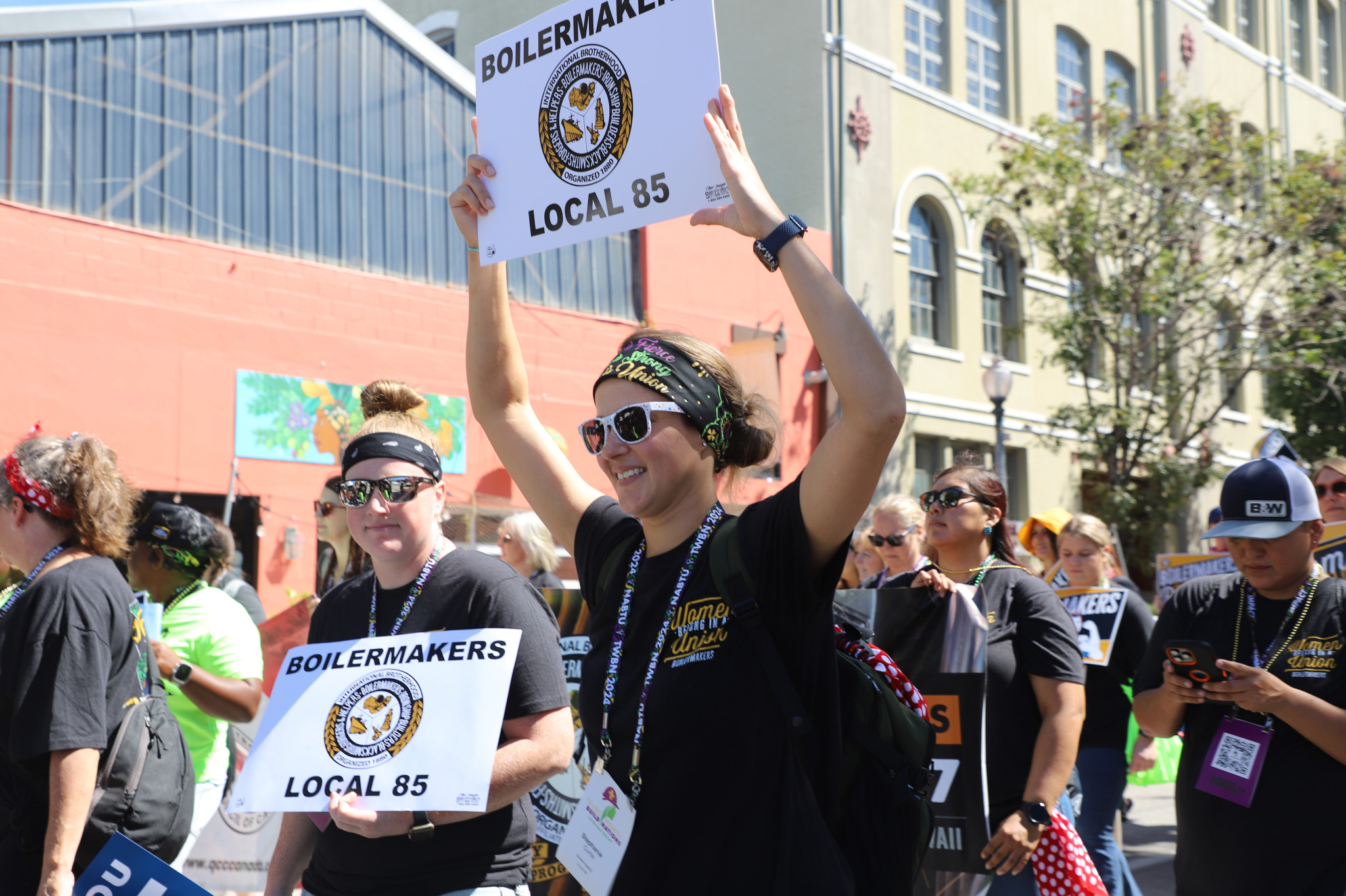 Local 549 muestra su espíritu de Boilermaker en el desfile de pancartas.