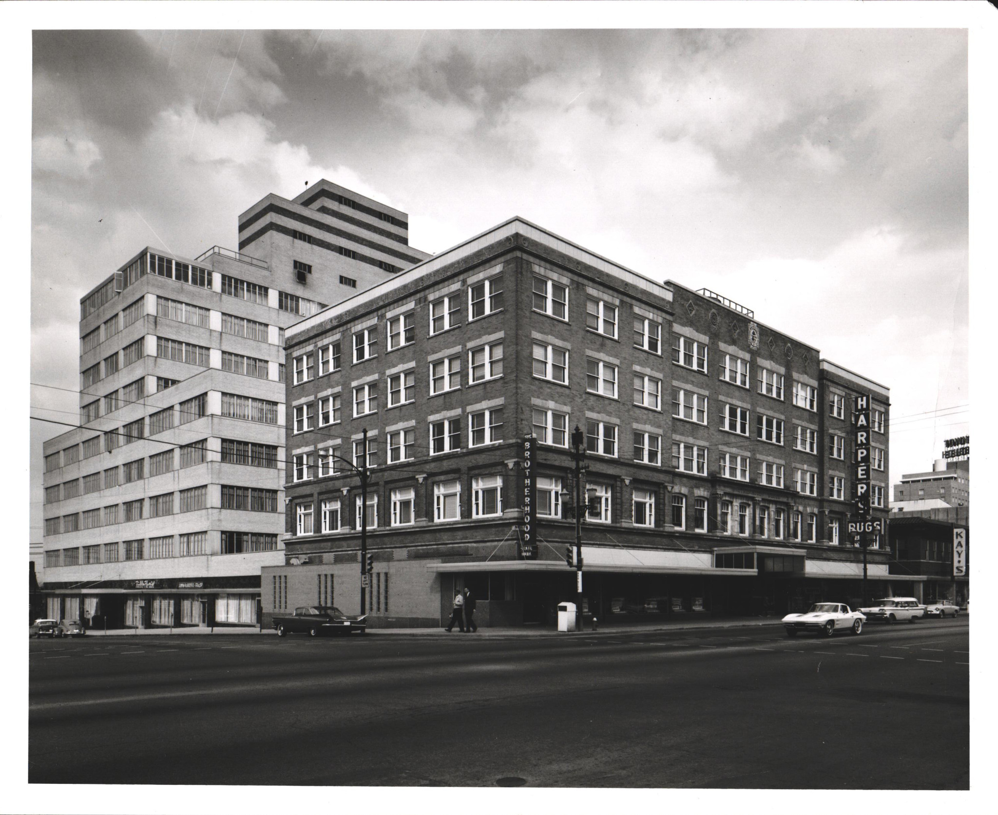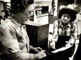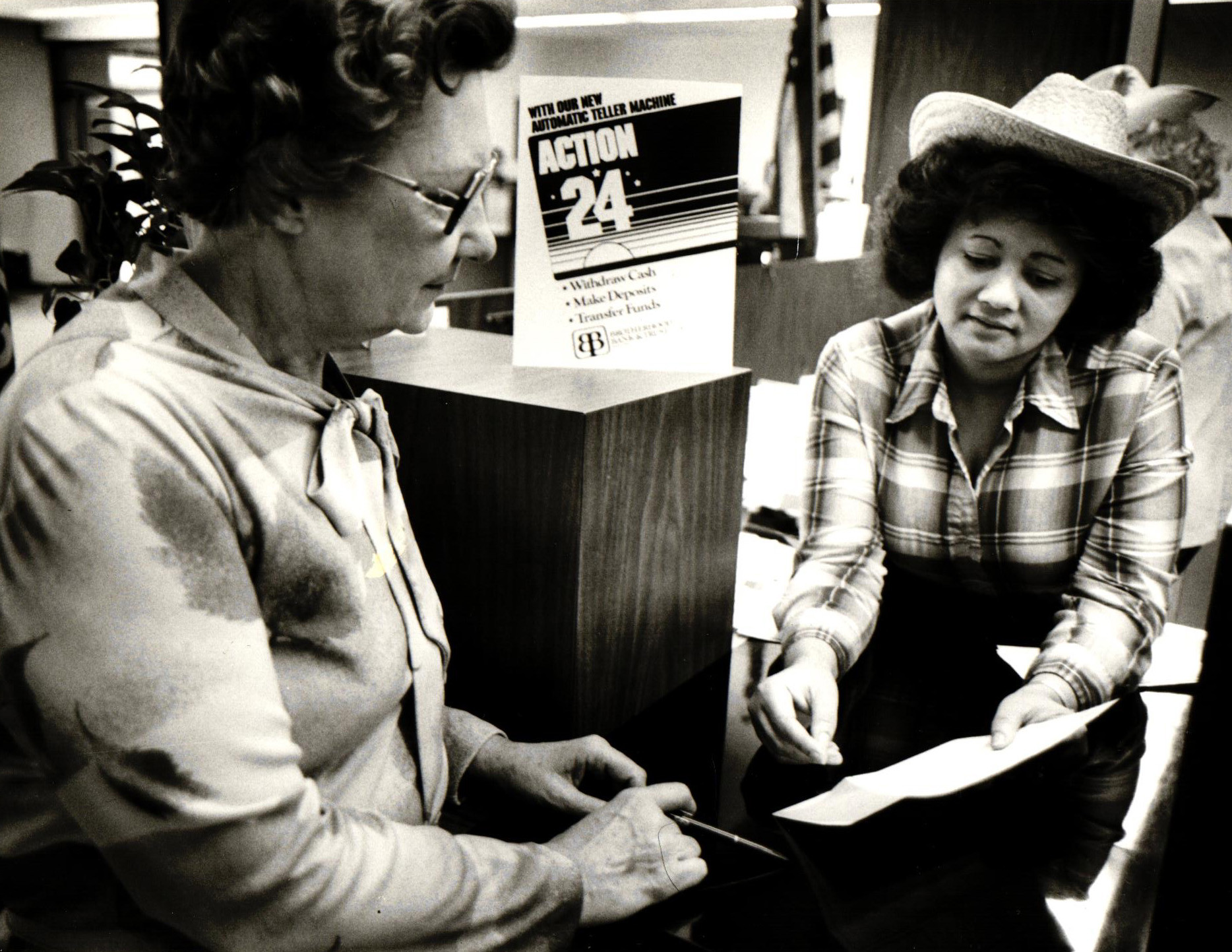 Vista de la bóveda del banco de trabajo en la gran reapertura del banco principal tras la remodelación de 1950.