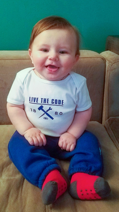 El pequeño Parker Sullivan, hijo de Tommy y Nicole Sullivan, presume su camiseta del Código Boilermaker. Su padre compró la camiseta el año pasado mientras servía como un delegado en la 33ª Convención Consolidada. Después de pasar por el entrenamiento del Código Boilermaker de MOST, Tommy, L-154 (Pittsburgh), se convirtió en un partidario entusiasta. “Nunca es demasiado pronto para empezar a vivir el Código”, comentó.