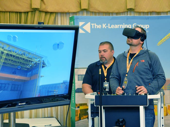 ENTRE OTROS ASPECTOS de la conferencia estuvieron la Seguridad de la Antorcha, donde el presentador Dale Breckenrige de AirGas dio vida a la ciencia y las matemáticas, mientras presentaba el “por qué” detrás de las prácticas de seguridad y distribuía secciones transversales y partes; y la demostración práctica de realidad virtual de Kelly Press. Un simulador de elevación aérea colocó a los participantes con gafas de realidad virtual en una plataforma que reproduce las vistas y otras sensaciones al operar un ascensor de manera segura y realizar una serie de maniobras. Mientras más segura sea la sesión del simulador de levantamiento aéreo, más puntos ganará un participante. Para agregar una competencia amistosa, Kelly ofreció un premio para la puntuación más alta al final de la conferencia.