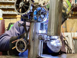 En el taller donde trabaja, solo hay tres hombres, rodeados de palés de piezas y planos. “Trabajo principalmente con piezas nuevas. Hacemos tanto reparaciones como fabricación”, explica. “Como llevo tanto tiempo aquí, confían en mi habilidad para crear las piezas que necesitan. Les fabrico piezas totalmente personalizadas.”