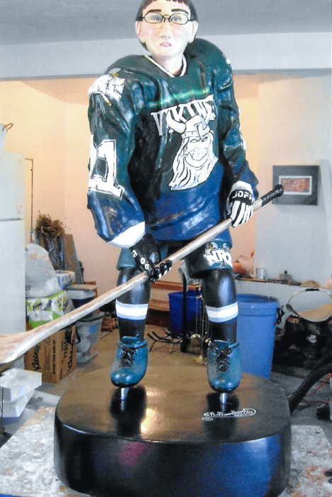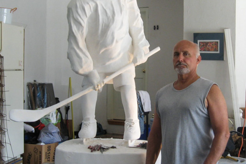 En su primer intento artístico, creó una tortuga durante la clase de escultura. Pronto subió de escala, haciendo una estatua de 280 libras y 5 pies de altura de su vecino jugando hockey. Creó la estructura ósea soldando el interior de hierro, luego cubrió la estructura con un paño de yeso, seguido de yeso de París. Después de moldearlo para que se pareciera a su vecino, pintó la ropa y detalles faciales en la escultura.