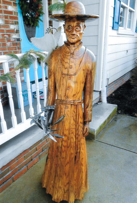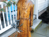 Su última creación es una estatua de roble del santo franco-canadiense André Bessette, conocido como el hermano André, que era el tatara-tataratío de Goodhart. Goodhart talló la estatua de 7 pies de un árbol de roble que estaba en su patio trasero. El tronco pesaba unas 400 libras cuando lo izó sobre ruedas y lo llevó a su taller.