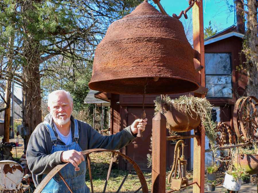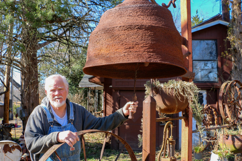 Su campana más reciente es enorme. Está colgada en la propiedad al este de su ciudad natal en Okmulgee, Oklahoma. McCormack, también miembro de la Asociación de Herreros de Salt Fork (Salt Fork Blacksmith Association), soldó aproximadamente 180 libras de varillas de hierro de 5/16 pulgadas en un patrón circular para dar forma al cuerpo de 30 pulgadas de diámetro de la campana. Tomó 30 horas en fabricarlo. “No podría hacerlo todo en un solo lugar”, dijo.