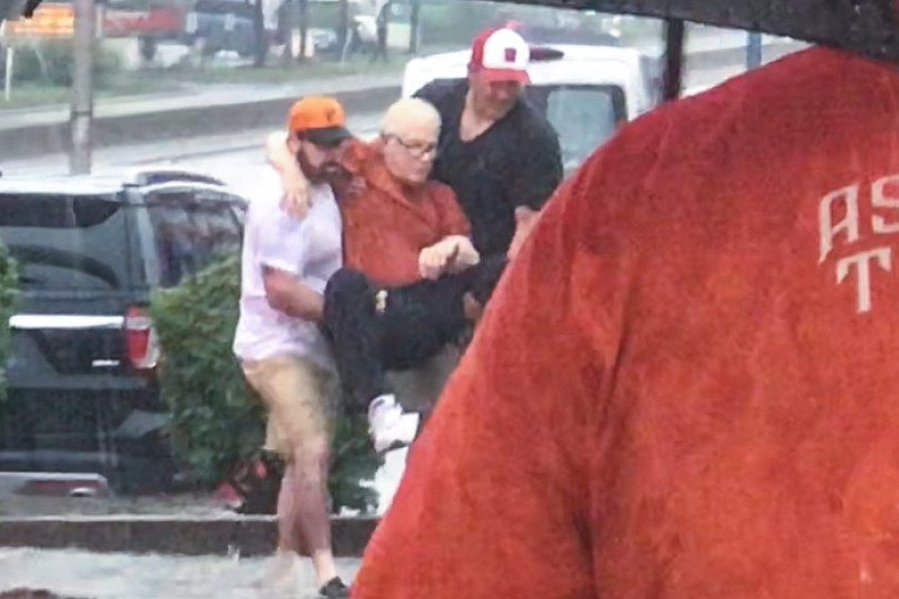 Al ver cómo se desarrollaba la escena y percatarse del peligro, Messina giró su camioneta para evitar las inundaciones. Un remolino de agua que subía por las puertas de un sedán rojo aparentemente abandonado le llamó la atención unos metros delante de él.