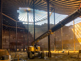 «Estábamos atentos a los informes meteorológicos intentando determinar si teníamos tiempo suficiente para colgar un campo entero (una sección “capa”) y tener el campo colocado y asegurado antes de que los vientos nos golpearan», dijo Baxter. «El personal reconocía lo que tenía que hacer y lo hizo cuando las ventanas de viento bajo o nulo se abrían, y los Boilermakers podían colgar un campo en menos de cinco horas.».
