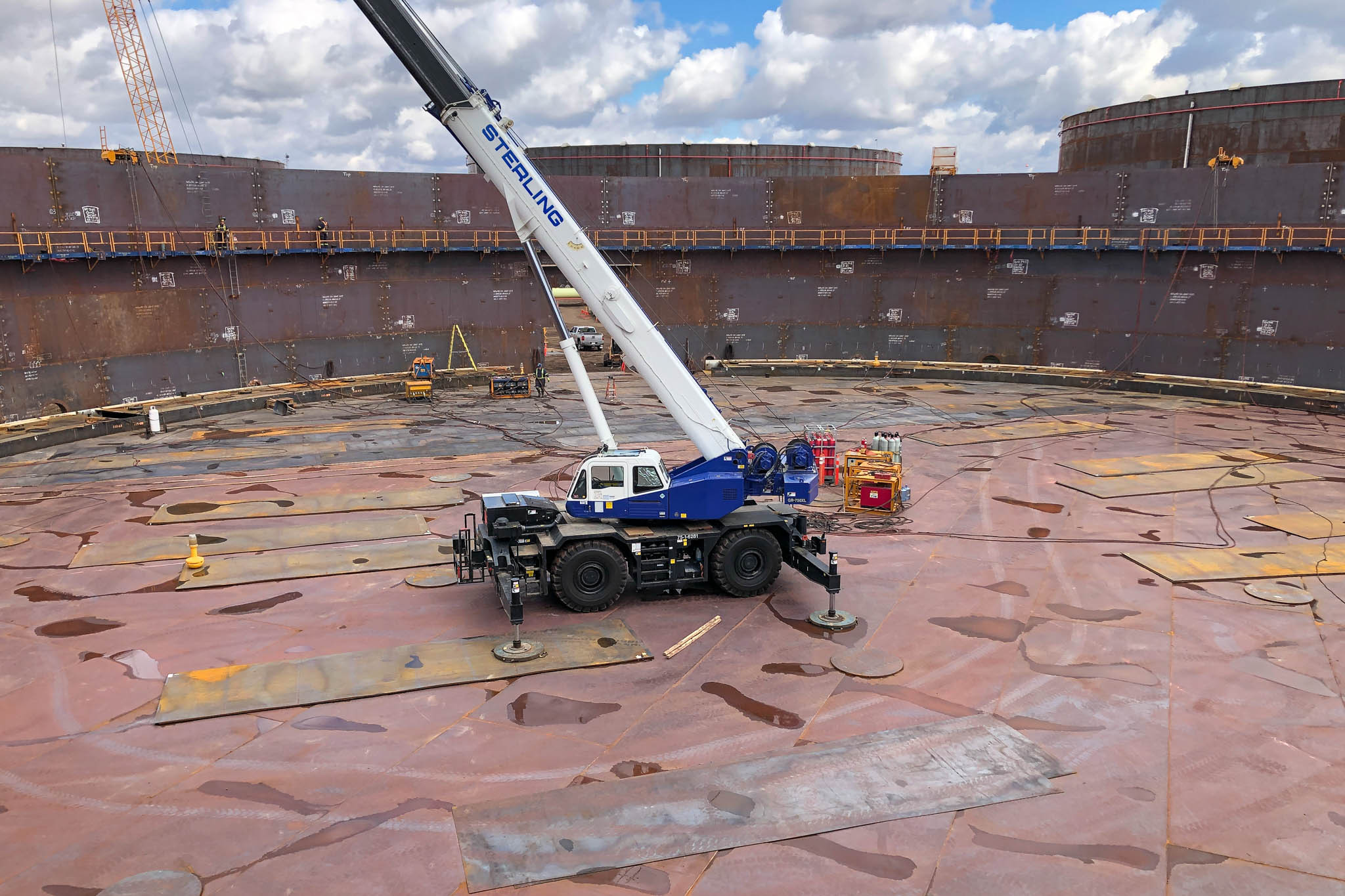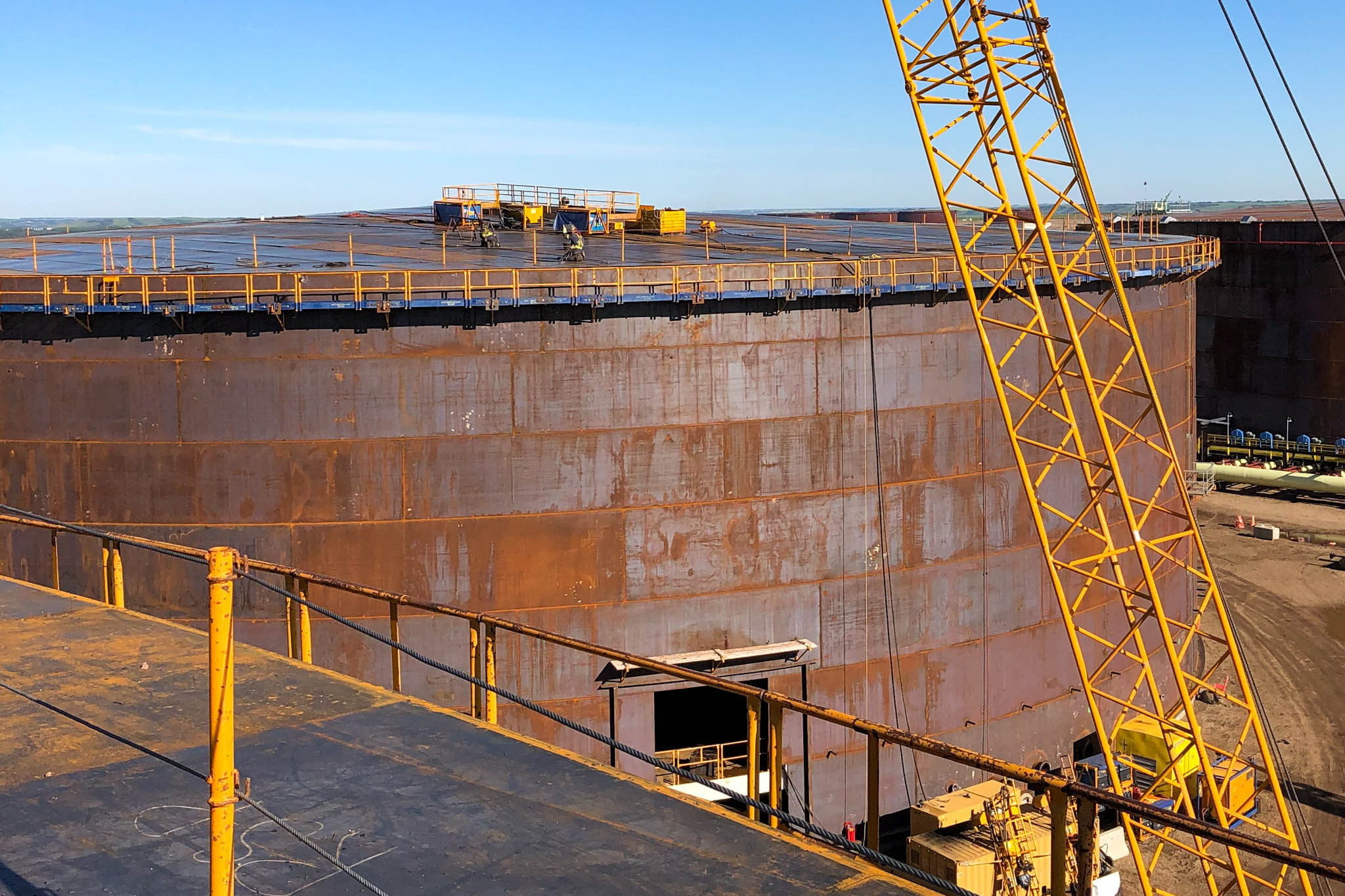 Cada uno mide 245 pies de diámetro por setenta pies de alto, y cada uno incluye un techo flotante interno, los dos tanques tardaron seis meses en completarse, dos semanas antes de la meta del cliente de TIW de terminarlos de manera segura en veintiséis semanas. Para realizar el trabajo a tiempo, de forma segura y dentro del presupuesto, treinta y seis Boilermakers se dividieron en tres equipos que trabajaron diez horas diarias, siete días a la semana, con una rotación de dos semanas de trabajo y una semana de descanso.