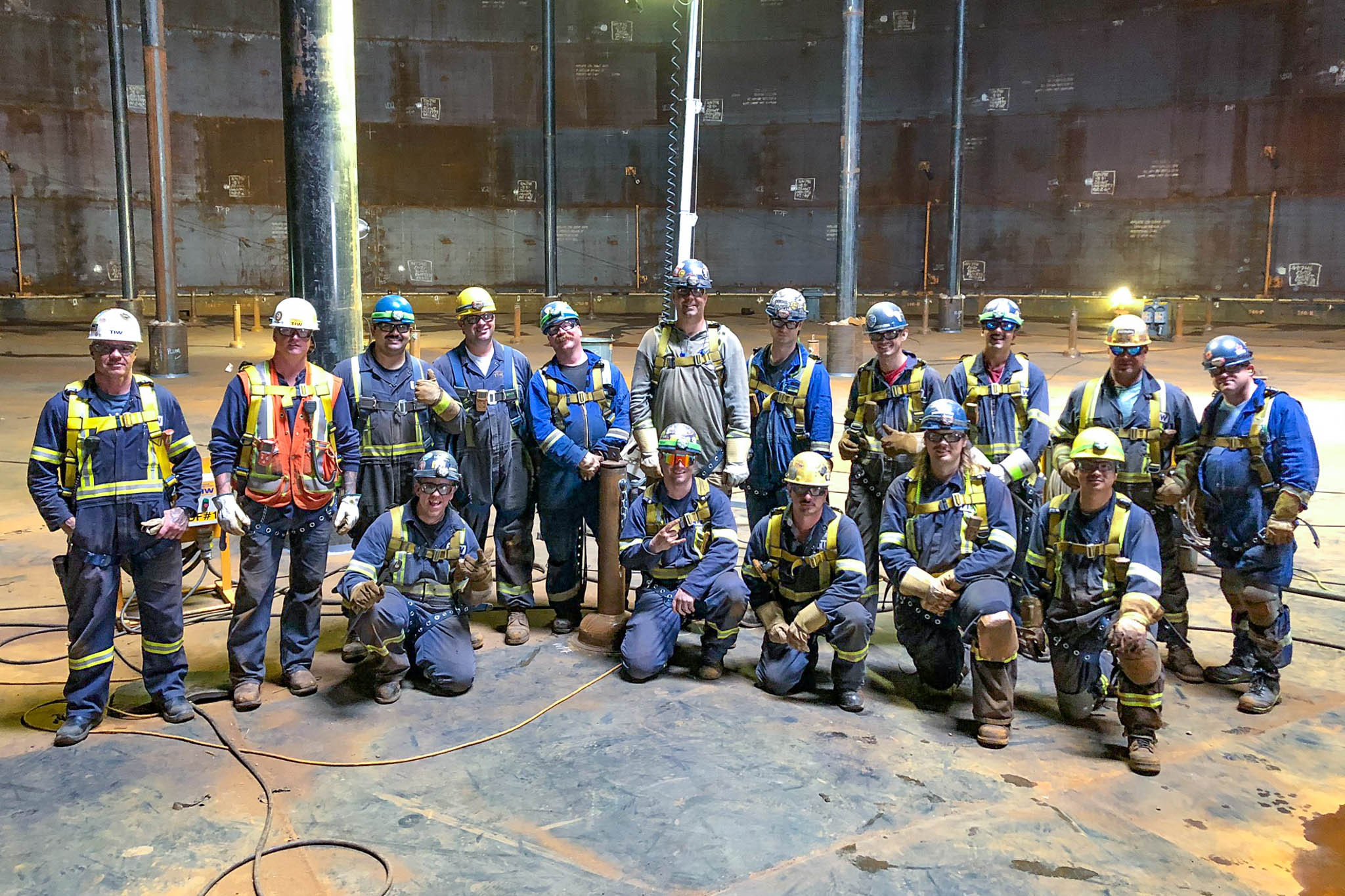 «El trabajo en equipo fue la visión que tuvo el personal al inicio del proyecto, y los Boilermakers vinieron con las habilidades que habían desarrollado durante sus aprendizajes y carreras», dijo Mark Baxter, superintendente de campo/supervisor de control de calidad de TIW y miembro del L-555. «Los equipos estaban formados por Boilermakers de tanques, cierres y refinería. Se requería cierta capacitación para las máquinas de soldadura automática, como las 3 O’Clock y las máquinas verticales, pero una vez que los Boilermakers se familiarizaron con la maquinaria, la dominaron».