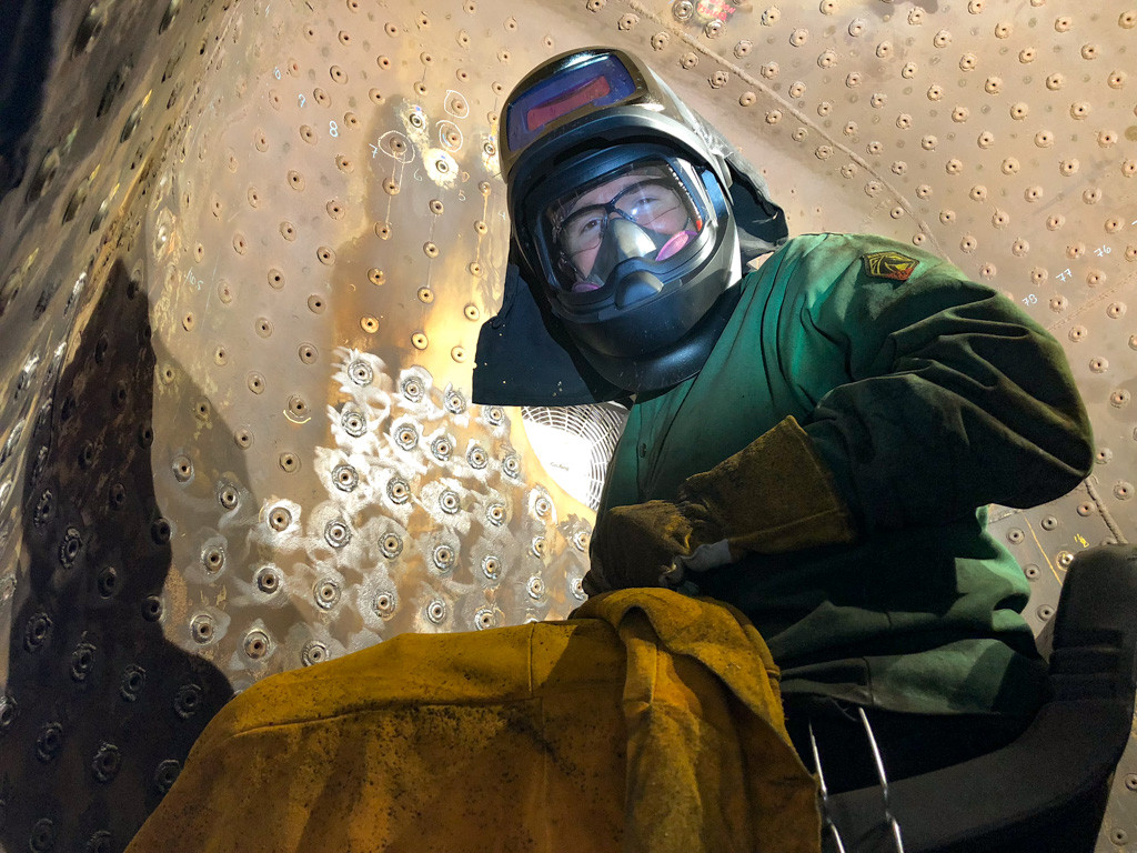 Crerar y Thompson pusieron nuevos tubos y chimeneas. «Hicimos muchísimas soldaduras allí. Pusimos algunos parches donde estaban los tornillos de fijación; recortamos parches que estaban delgados y los volvimos a colocar», dice Crerar.