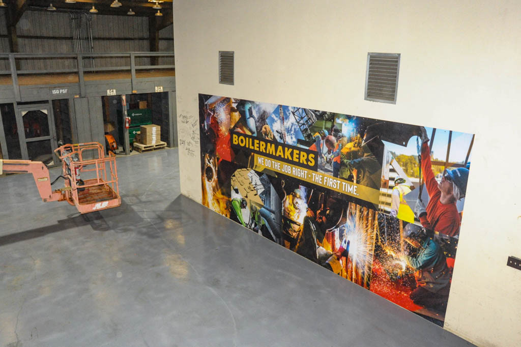 Jeffrey Hughes, director de los Servicios Nacionales de Formación de las Operaciones del Sector de la Construcción, dijo que el centro cuenta con treinta y dos cabinas operativas (seis de núcleo de flujo, dieciséis de tubo y seis para soldadura en pareja) y cuatro aulas en otro edificio. TVA contribuyó con dos montacargas y una grúa Broderson para que los Boilermakers pudieran habilitar el espacio para la capacitación oficial de aprendices. Todavía hay mucho espacio abierto y Hughes tiene planes de agregar una estructura de aparejo EPRI y algunas cabinas de capacitación de realidad virtual, además de una nueva programación.
