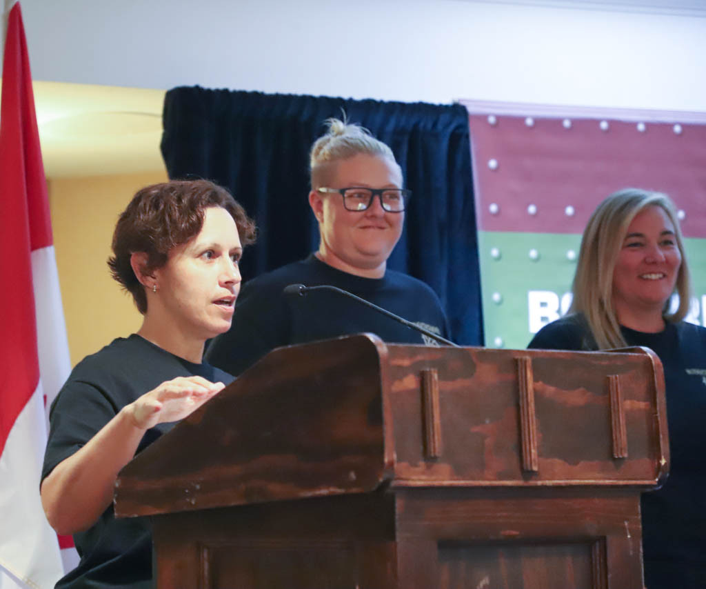 Sara Scott, directora ejecutiva de la Asociación de Contratistas de los Boilermakers de Canadá, y Milton Howley, gerente de la Planta de la Estación Generadora de Aconi, también dieron la bienvenida a los asistentes al tripartito.