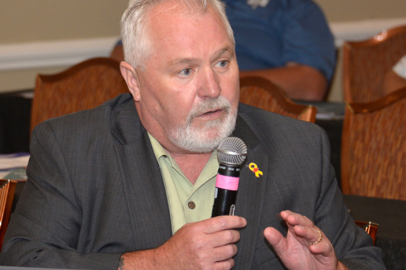 Jason McGinnis, Director Boilermaker para la Salud y Seguridad, siguió la presentación de Chosewood con una revisión del Programa de Salud Total del Trabajador de los Boilermakers actualmente en desarrollo. Dijo que el programa tiene un enfoque multifacético con iniciativas como las encuestas de salud y seguridad, compartiendo información a través de la página web canadiense de los Boilermakers y otros lugares, el uso de programas de software personalmente personalizables para dieta y ejercicio, clínicas de verificación de la salud, y de igual a igual presentaciones de vídeo en la que los miembros hablan de sus problemas de salud.