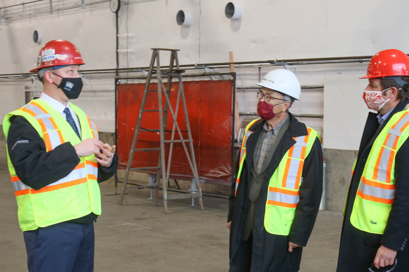 Rob Taylor, gerente de negocios/secretario-tesorero del L-191, dirigió la visita para el honorable George Chow, ministro de Estado de Comercio; el honorable Rob Fleming, ministro de Transporte e Infraestructura; y Andrew Mercier, secretario Parlamentario de Capacitación Profesional, junto con representantes de los Oficios Metalúrgicos de la Isla de Vancouver (Vancouver Island Metal Trades).