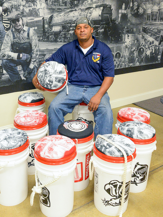 HACE UNOS TRES años, el miembro del Local 456 Gikus Bigelow decidió hacer un cubo herramientas para sí mismo que fuera ligero, lo suficientemente alto como para sentarse cómodamente y equipado con un asa de cuerda resistente para izar. Cuando llevó el cubo al trabajo, fue un éxito inmediato con sus compañeros Boilermakers.