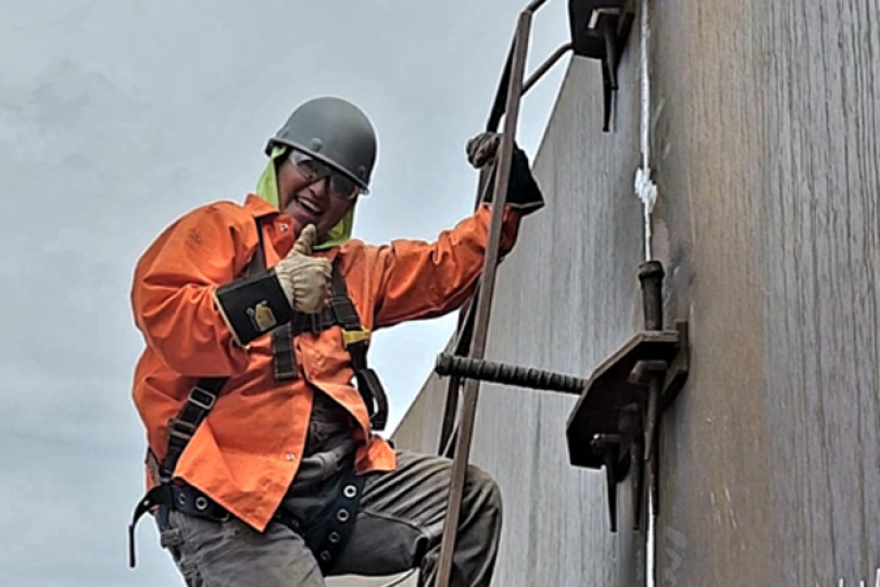 "Mi carrera como Boilermaker me ha llevado a muchos lugares, niveles y alturas", dice. "Me encanta este campo. ¡Me encanta estar ahí fuera, ensuciándome y trabajando!”