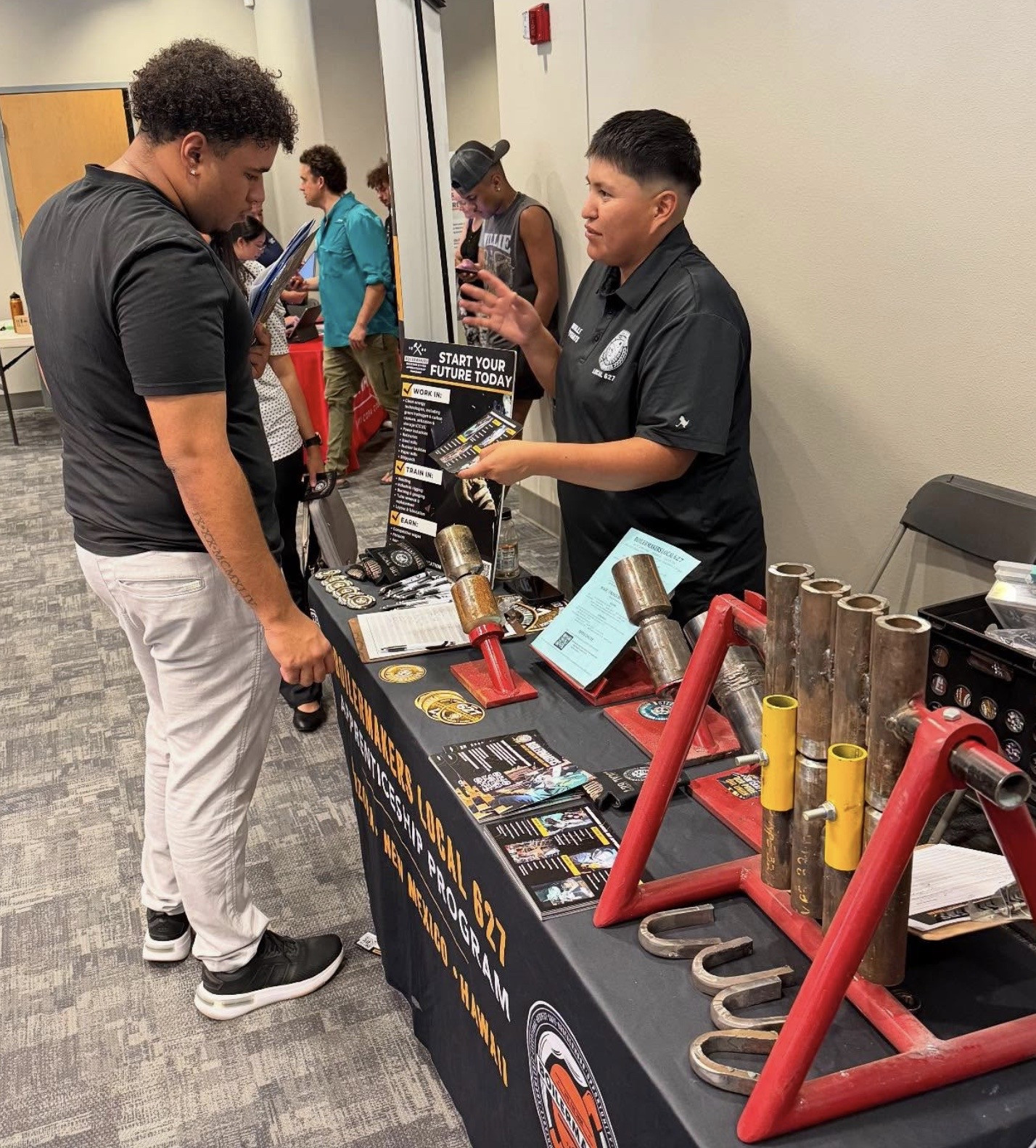 “Tenemos poco personal en la sala, y todos están ocupados y no pueden asistir a ferias de empleo ni a otras actividades. Con tanto trabajo por delante, necesitábamos trabajadores”, dice Evenson. “Sabía que Danielle sería una buena opción como reclutadora y para hablar con jóvenes, miembros de la Nación Navajo y otras tribus. Ella tiene una larga trayectoria en el sector, y su trayectoria en los Boilermakers es una buena historia para quienes se interesan por el oficio.”