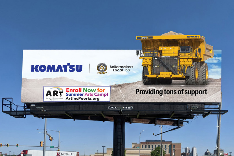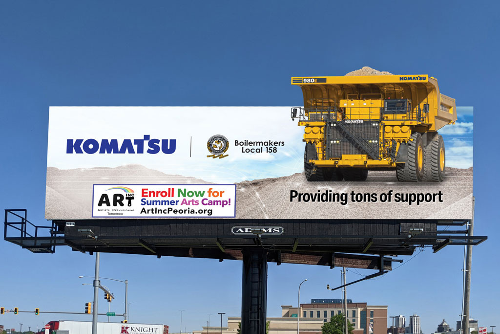 Komatsu hizo un reconocimiento a sus empleados del Local 158 (Peoria, Illinois) e incluyó el sello de los Boilermakers en una valla publicitaria en honor a la organización benéfica local de Peoria, ART, Inc. (https://artincpeoria.org/). Como parte del programa Tons of Support de la empresa, Komatsu utiliza vallas publicitarias para reconocer y concienciar sobre una organización sin fines de lucro diferente del centro de Illinois o una ocasión, como el Día de los Veteranos, cada mes.