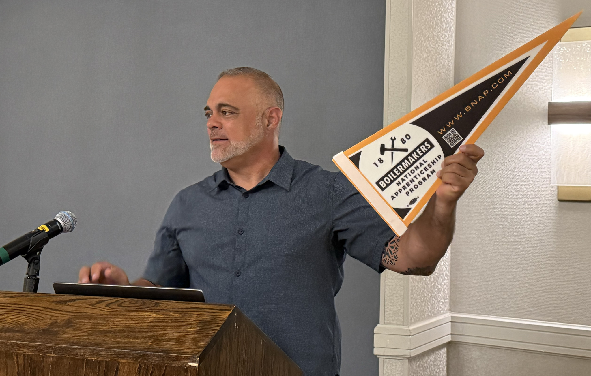 “Nos comprometemos a trabajar con ustedes”, dijo, dirigiéndose específicamente a propietarios y contratistas. Cada oportunidad de trabajo, cada hora que un Boilermaker puede trabajar, es alguien que trabaja para pagar la universidad de su hijo, el pago del auto o la hipoteca. Estamos verdaderamente comprometidos con el perfeccionamiento de nuestro oficio, el desarrollo de nuevos programas y el crecimiento de nuestro sindicato. Sabemos que hay contratistas que presentarían ofertas para más trabajo si supieran que podemos cubrirlo.