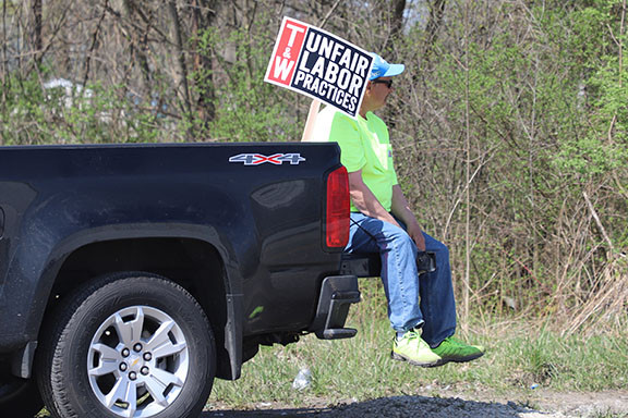 En la línea de piquete, la L-1622 observa a los trabajadores temporales ir y venir, y son muy conscientes del silencio que queda cuando las prensas y otras máquinas de T&W se detienen.