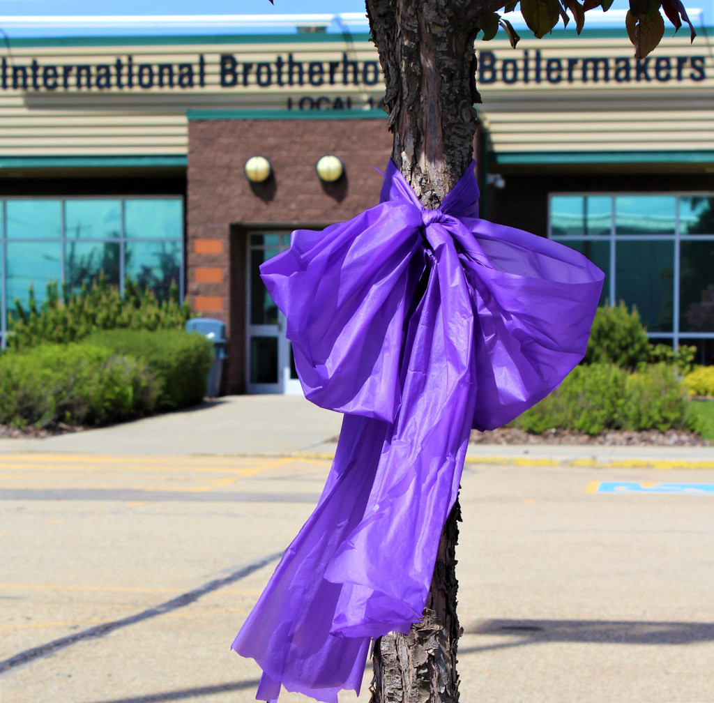 No pasó mucho tiempo antes de que la Campaña de la Cinta Púrpura se expandiera, más allá de Alberta y más allá de las cintas. El Local 146 agregó a la mezcla calcomanías de cinta púrpura para automóviles, letreros de jardín y calcomanías para cascos, disponibles a cambio de donaciones de alimentos no perecederos, así como ventas de máscaras púrpuras no quirúrgicas hechas por costureros artesanales locales, todos los cuales tienen vínculos con el Local 146.