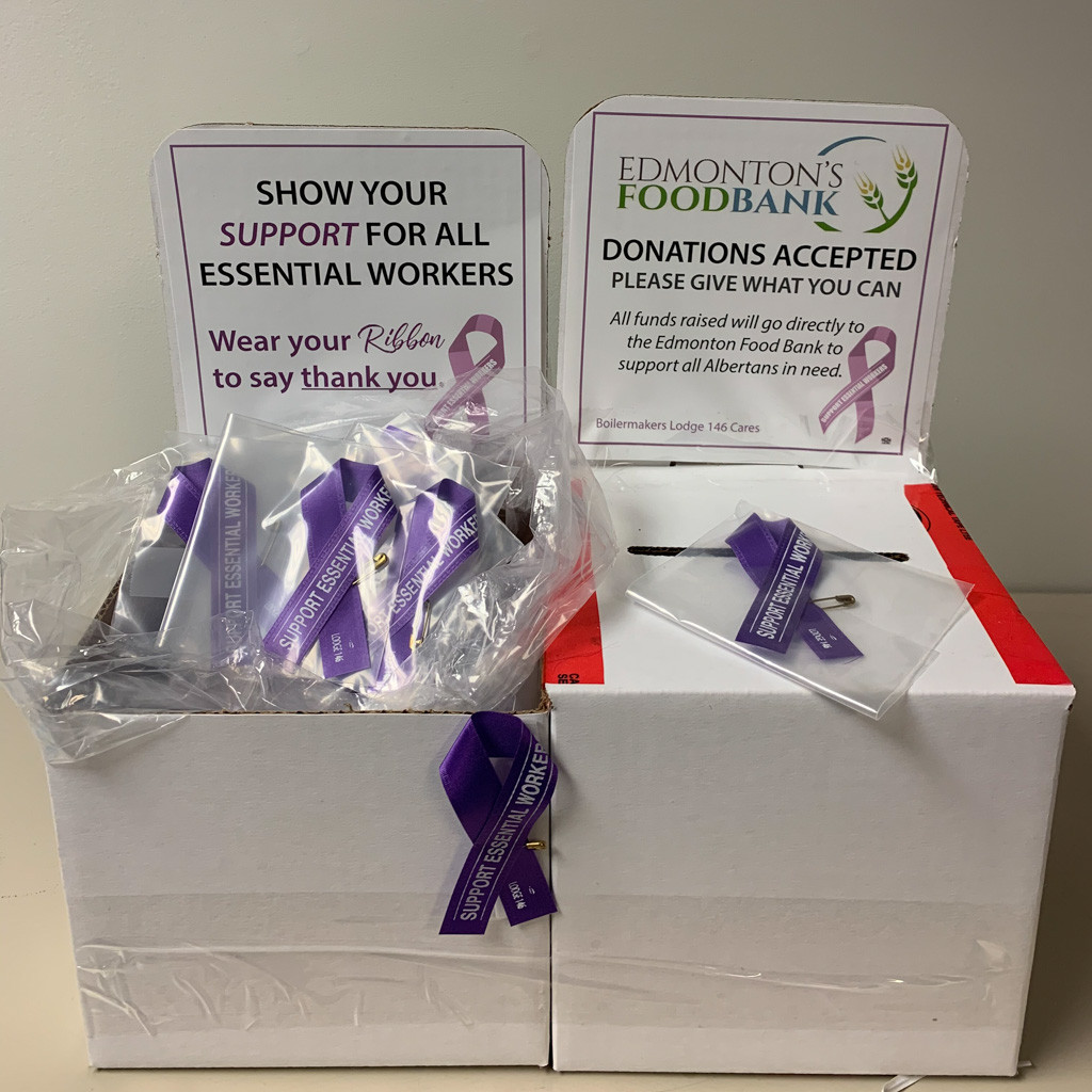 «Los trabajadores esenciales están realizando diariamente un trabajo crítico para mantenernos seguros; y en estos tiempos de necesidad con muchos ciudadanos de Alberta despedidos, estamos felices de que podemos y haremos nuestra parte. Llevar una cinta púrpura y a la vez donar al Banco de Alimentos de Edmonton es una forma de cumplir con nuestro mandato».