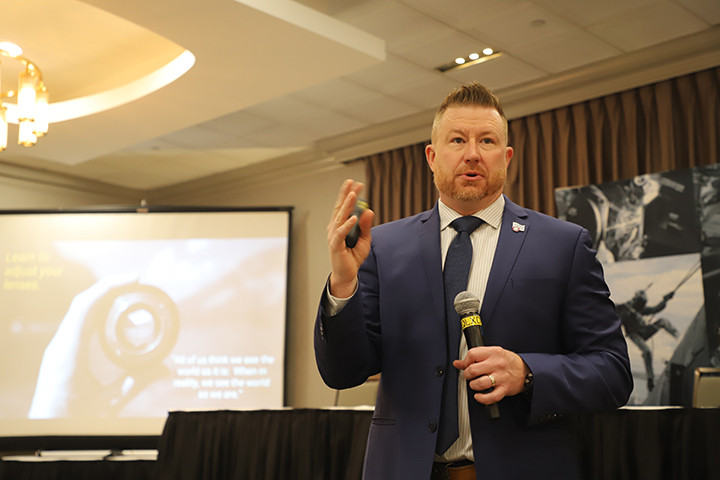Escuchar es importante, y Mark Garrett, director de salud y seguridad y administrador del programa MOST, se hizo eco de esto en su discusión sobre el bienestar mental. Dijo que escuchar podría incluir ayudar a un hermano o hermana que atraviesa problemas de salud mental y dijo a los instructores que busquen señales de advertencia de que alguien está luchando. Estos pueden incluir no presentarse al trabajo, fallar en tareas que un hermano o hermana han realizado con éxito antes, retraimiento, mayor uso de alcohol y drogas, aislamiento de amigos, fatiga y comportamiento nuevo o modificado. Dijo que alguien que lucha puede hablar de estar atrapado, fallarle a otros o querer salir de la vida.
