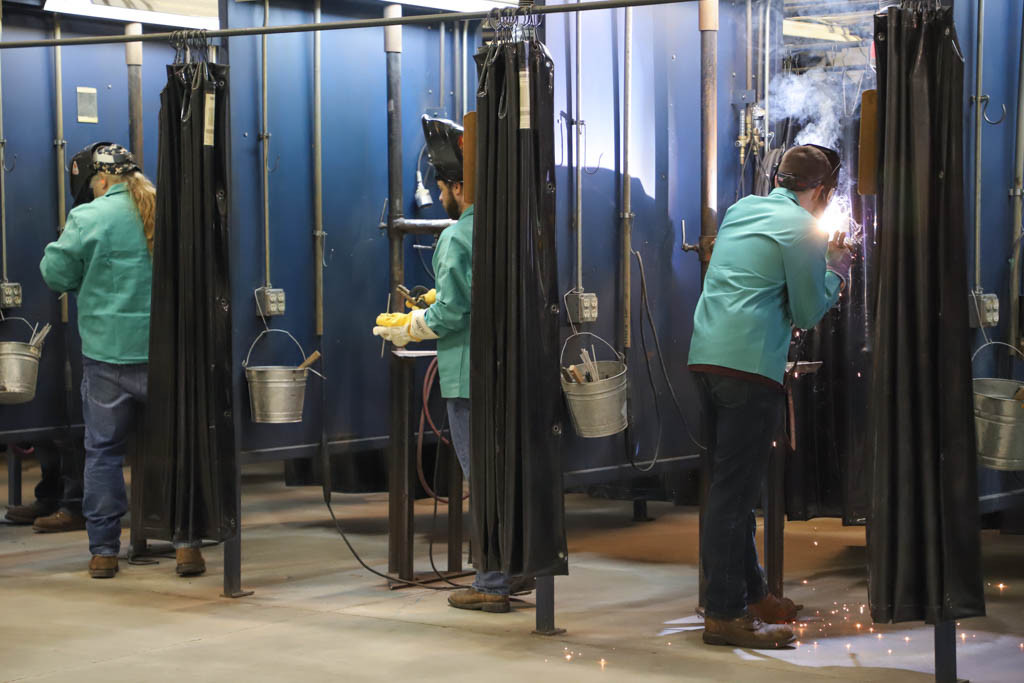 Un camarógrafo de la serie A Profundidad muestra unos aprendices trabajando en cabinas de soldadura en el L-169.