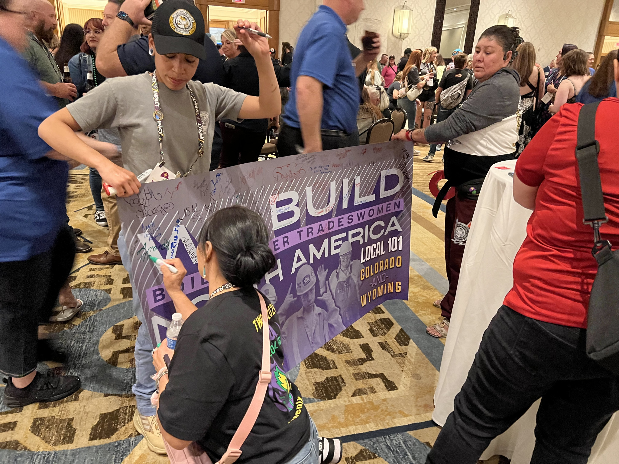 “Unions built the middle class. When unions do well, all Americans do better,” Biden said. He went on to talk about the increase of construction jobs, infused by his administration’s infrastructure funding. He noted that his term saw 100,000 more women in construction, the lowest unemployment rate for women in 70 years, a narrowing of the gender pay gap and a nearly 50% increase in women in apprenticeship programs.