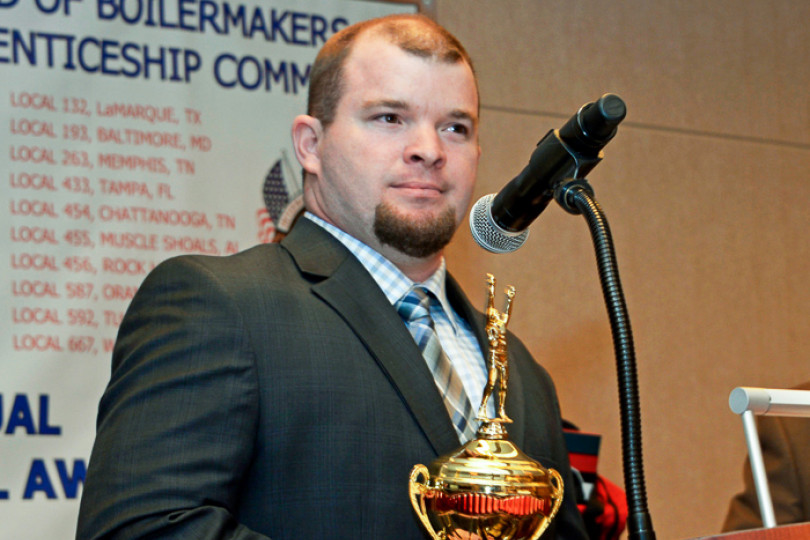 DANIEL A. EISENHART, a member of Local 69 (Little Rock, Ark.), received the 48th annual Paul D. Wedge Memorial Award for the Outstanding Graduate Apprentice of the Southeast Area during ceremonies at the Westin Crown Center in Kansas City, Missouri, June 23. Seven graduate apprentices from the Southeast Area competed for the award at Local 83 (Kansas City, Missouri) June 20-21. Eisenhart and runner-up Adam M. Williams (Local 40, Elizabethtown, Kentucky), and six winning graduate apprentices from the other U.S. area competitions will vie for the top title at the BNAP National Competition August 22-25 at the Local 101 Training Center in Denver.