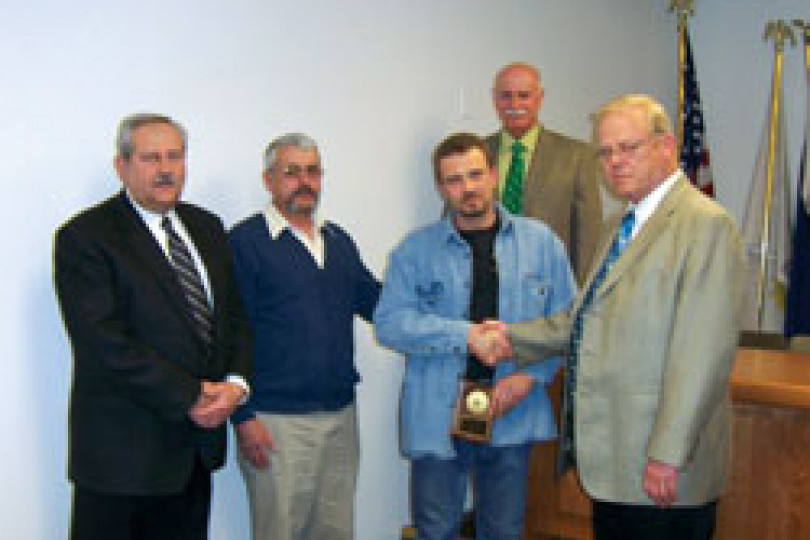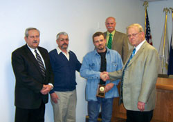 Chicago Local 1 BM-ST John J. Skermont announces the presentation of the first annual Joshua A. Terando Apprentice of the Year Award to Steven Kotyuk. The annual award for the highest ranking Local 1 apprentice was named in honor of a Local 1 apprentice killed in action in Iraq.