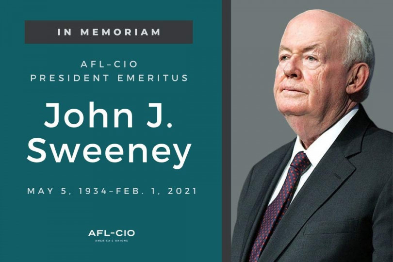The International Brotherhood of Boilermakers mourns the loss of AFL-CIO President Emeritus John Sweeney, who died February 1, 2021 at the age of 86. Sweeney served five terms as AFL-CIO President, beginning in 1995, stepping down in 2009 to remain as President Emeritus.