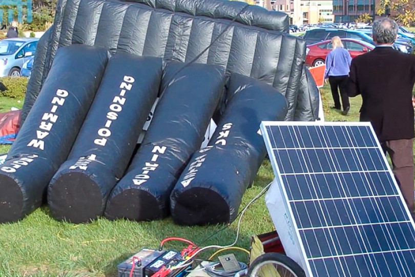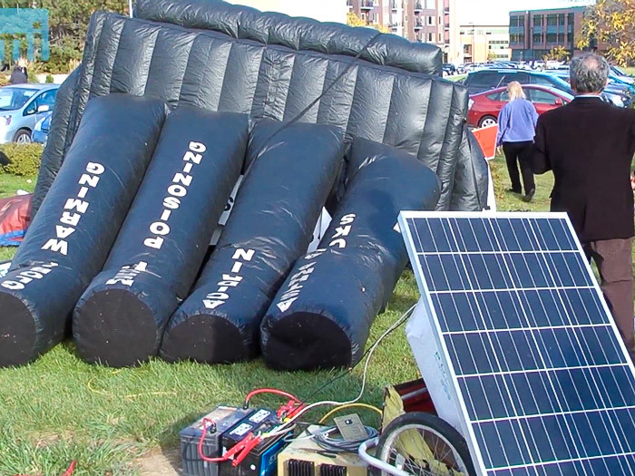 But the renewable power supply failed to provide enough juice to last throughout the protest, and the inflatable collapsed. (Watch on YouTube http://youtu.be/2Fs5v6NHTHg.)
