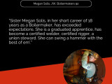 Journeyworker Megan Solis out of Local 92 (Los Angeles) has dedicated 18 years as a Boilermaker and throughout her career has exceeded expectations with her drive and dedication. After graduating as an apprentice, Solis then went on to become a certified welder, certified rigger and a union steward.
