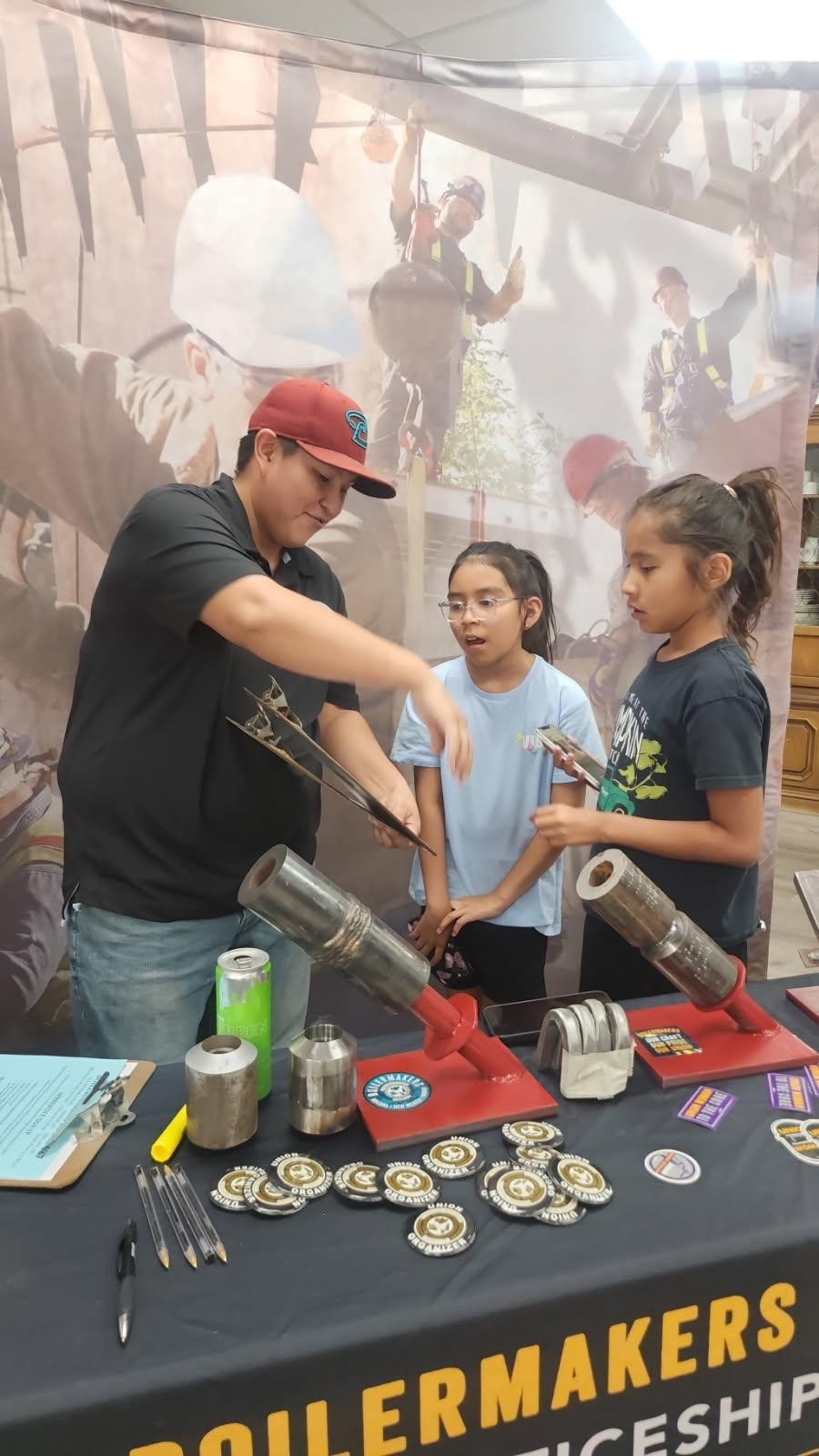 The nieces of L-627 Boilermaker recruiter Danielle Manygoats get wide-eyed learning about their aunt’s career at a job fair.