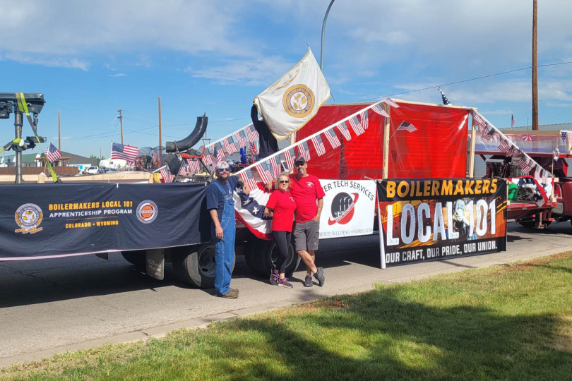 Members from Local 101 (Denver) participated in Gillette, Wyoming’s annual Independence Day celebration. Boilermakers represented our craft along with Powertech Services during the parade. L-101 apprentice Craig Jones, who participated in this year’s competition, demonstrated welding on a tube panel attached to the truck. This year’s theme was “Fortitude for Freedom.”