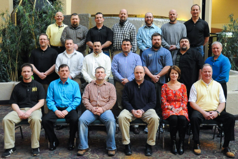 Back row: Gerry Klimo; Steve Chase, Local 169 (Detroit); Troy Jones, Local 27 (St. Louis); Mark Montague, Local 85; Kevin Coones, Local 83; Chris Knox, Local 83; and Mark Schneider.