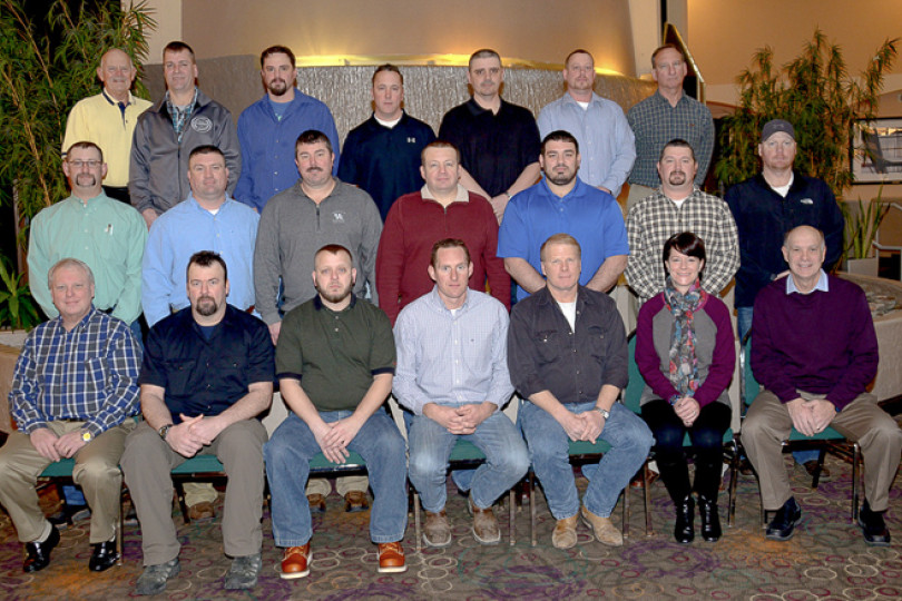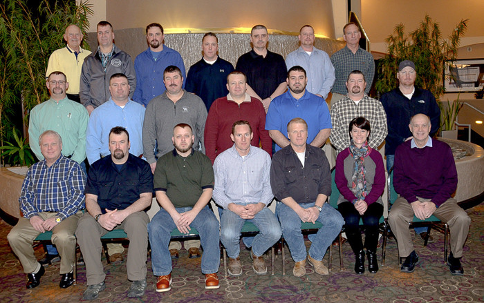 Pictured are, front row, left to right, Skipper Branscum, instructor, IBB; Shannon Thompson, L-502 (Puyallup, Wash.); Adam Howard, L-169 (Detroit); Adam Mueller, L-1 (Chicago); Charles Stobaugh, Local 502; Bridget Connors, MOST; Mike Suplizio, instructor (retired contractor); middle row, Timothy Heider, L-83 (Kansas City, Mo.); Jeremy Stinehelfer, L-85 (Toledo, Ohio); Kevin Griffith, L-40 (Elizabethtown, Ky.); Kenneth Cress III, L-363 (East St. Louis, Ill.); Jason Sandusky, L-363; James Smith Jr., L-83; Jeremy Norris, L-83; and back row, Gerald Klimo, instructor, L-154 (Pittsburgh); Gerald Calvert, L-83; Allan Violett, L-11 (East Helena, Mont.); Tony Donahue, L-647 (Minneapolis); Jay Foster Jr., L-744 (Cleveland); Paris Caudill, L-105 (Piketon, Ohio); and Mark Schneider, instructor (contractor with Madison Industrial Services Team).