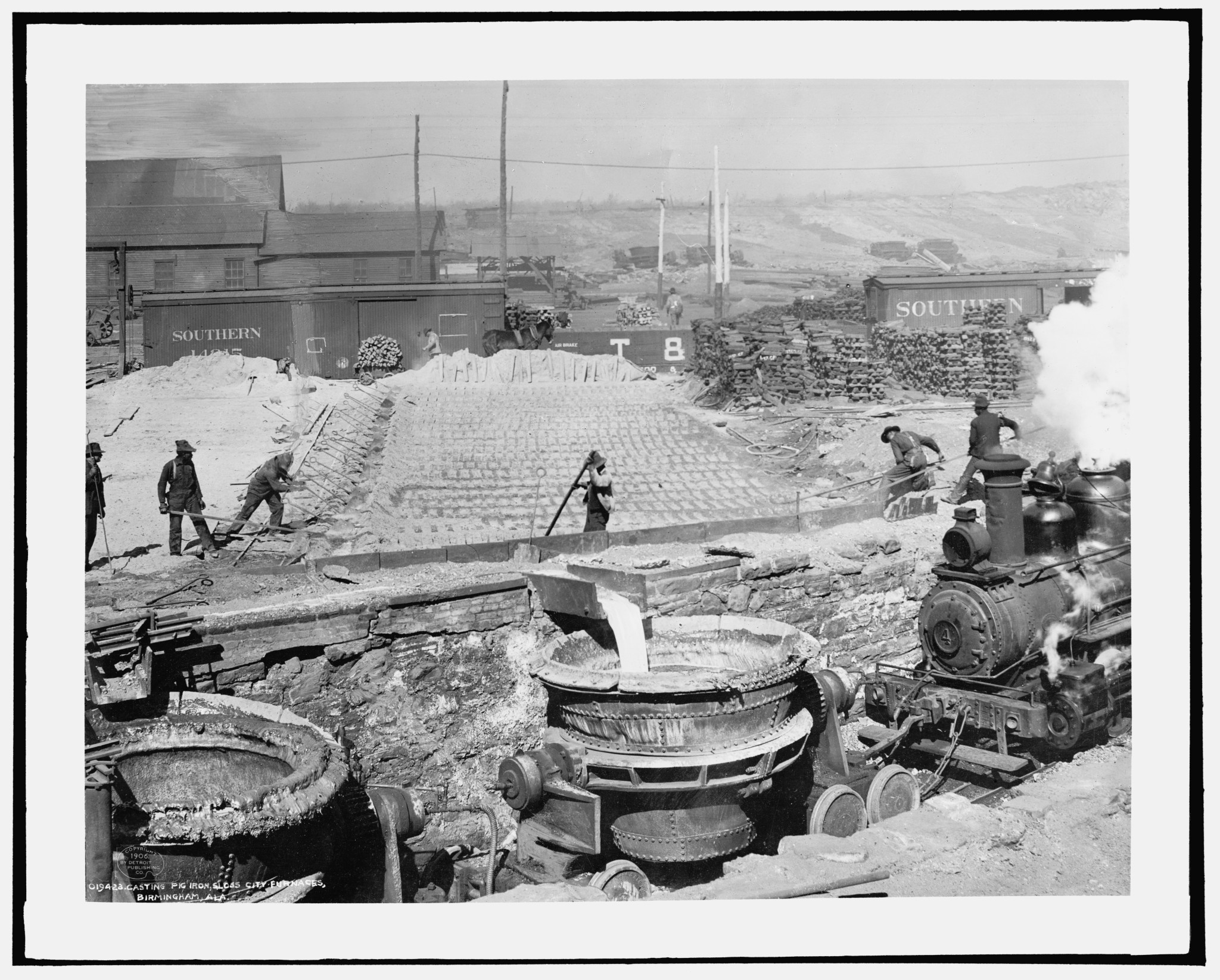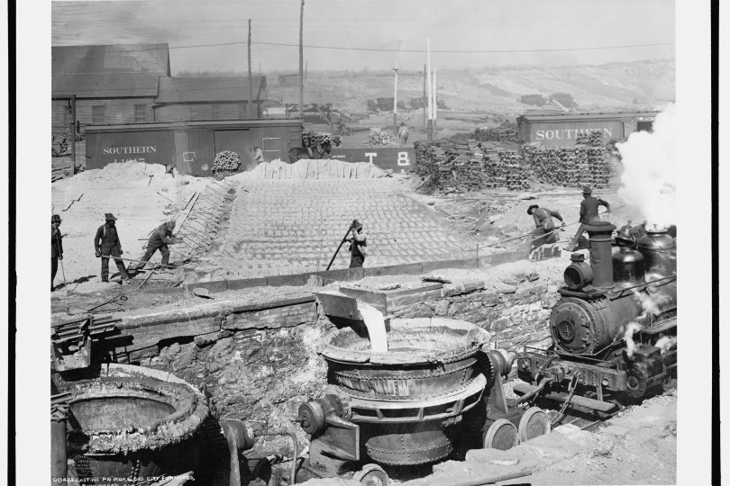 Slag run and filling slag pots at Sloss City furnaces, Birmingham, Alabama, circa 1906. Photo retrieved from Library of Congress