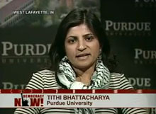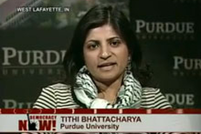 Tithi Bhattacharya, an associate professor of South Asian History at Purdue University and a protester who is taking part in Occupy the Super Bowl, discusses the protest and the opposition to Indiana’s so-called “right-to-work” law. Gov. Mitch Daniels signed the legislation Feb. 1 despite weeks of protest from labor unions, Democrats, and community leaders. Critics say the new law will result in lower wages and diminished collective bargaining rights.