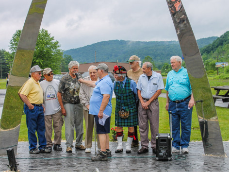 UN PEQUEÑO GRUPO de antiguos Boilermakers que ayudaron a construir el monumento más alto de la nación, el Arco Gateway de 630 pies de altura en St. Louis, ahora pueden ver una versión de la estructura a una escala de 1/45 (14 pies de altura) cerca Warren, Pensilvania, la pequeña ciudad donde una vez trabajaron en el famoso proyecto.