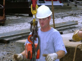 In the rigging test, contestants set up and performed a tank lift using winches, a boom derrick, and an equalizer beam, controlling the lift using hand signals. The tank had to be placed onto a pad at a specific elevation and nozzle location. The test required contestants to reeve a four-part line and calculate the percentages of the load to be carried by the line and the derrick. Also in this section, contestants showed their skills with ropes and knots as well as blocks and reeving.