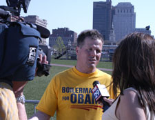 Among the 35,000 supporters were Boilermakers who came to hear the senator speak. Two of those members, both from Local 19 (Philadelphia), who work at the Aker shipyards, were Damon West, a plumber, and Fred Dockens, an outfitter. West and Dockens stood in line for an hour just to get to the security gate and then stood shoulder-to-shoulder with a packed and excited crowd for several more hours before Obama took the stage amidst an explosion of cheering, chanting, and applause.