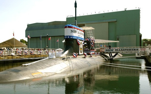 The newest New Hampshire is also the first submarine of its class to be placed in the water at 99 percent completion. The 7,800-ton submarine was built under a teaming arrangement between General Dynamics Electric Boat and Northrop Grumman Shipbuilding in Newport News, Va. She is 337 feet in length, has a beam of 34 feet, and can operate at more than 25 knots submerged.