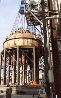 Some of the larger lifts at the job included removal of the regenerator head with the old plenum and cyclones that weighed 650 tons, and its replacement weighing 680 tons with rigging.