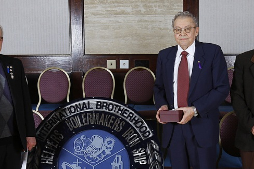 Edmonton Local 146 pin recipients, l. to r., 45-year member Bud Parnitzky, 55-year member William Fosti, and 50-year member Paul Langner.